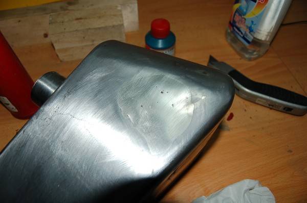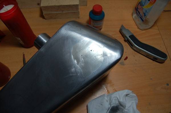 – Tema terminado, es cierto que me quedan unos poros, pero como era tarde y esto lo puede cubrir la masilla, paso de complicarme la vida, pero básicamente se solucionan con un soldador de punta fina y una vez fundido el metal del poro se aporta mas metal y se repasa con la lija otra vez.
