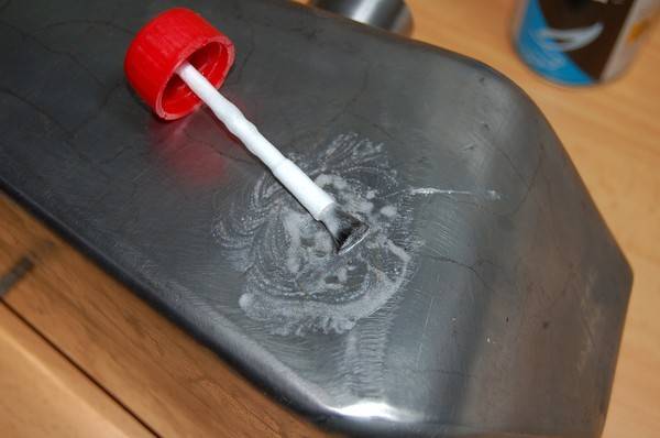 – Lo primero que haremos es impregnar todo de decapante de fontanero, si no hacemos esto el metal no se adhiere. También valdría con salfumant o agua fuerte.