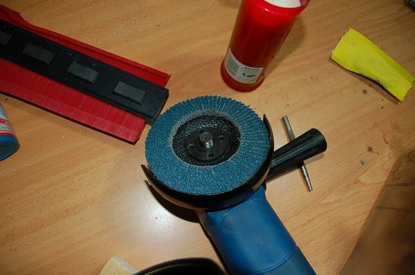 – Para ahorrar tiempo uso discos de lijas, al principio una 40 y termino con una 120. y luego a mano la ultimas pasadas con grano mucho mas fino.